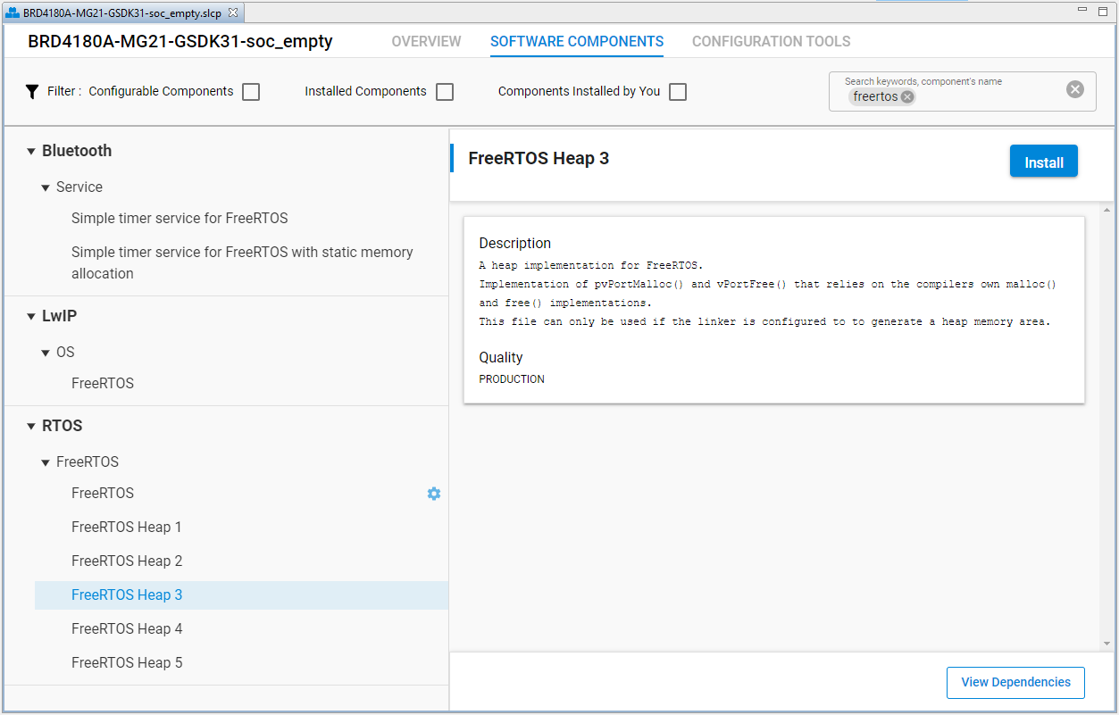 3. Select FreeRTOS Heap 3 in the left pane and click Install.