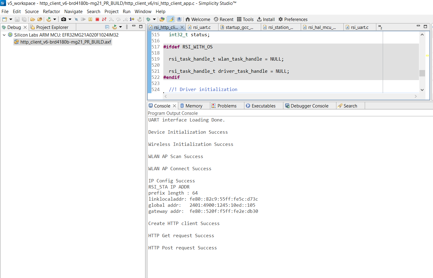 <SDK>/examples/snippets/wlan/http_client_v6/projectsSelect the appropriate .slsproj as per Radio Board type mentioned in Section 3.3 for EFR32 board. (or)