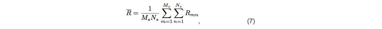 where 𝑀s and 𝑁s are the number of subarrays in x and y directions respectively and 𝑅𝑚n stands for the (𝑚, 𝑛)th sub array covariance matrix. An example proof of this formula and more information can be found in Y.-M. Chen, “On Spatial Smoothing for Two-Dimensional Direction-of-Arrival Estimation of Coherent Signals”, IEEE Transactions on Signal Processing, Vol. 45, No. 7, July 1997.
