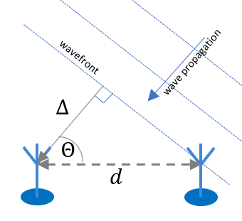 If the receiver is far enough from the transmitter (at least 3-4 wavelengths), the wavefront is assumed to be planar. In this case the angle of incidence can be readily determined from this distance (Δ) using trigonometric functions: