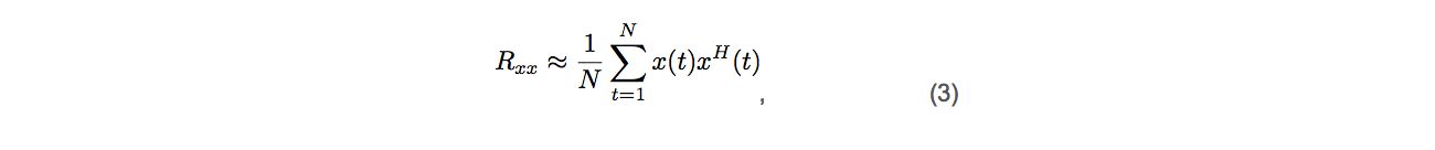 One type of estimation algorithm is the so-called subspace estimator, and one popular algorithm of that category is called MUSIC (Multiple Signal Classification). The idea of this algorithm is to perform eigen decomposition on the covariance matrix 𝑅xx :
