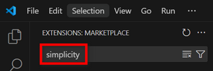 In the Search field at the top of the EXTENSIONS panel, type simplicity.