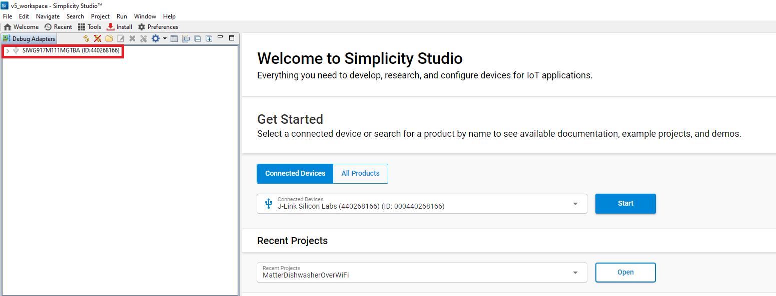 To download and install the Simplicity Studio IDE, refer to the Simplicity Studio IDE Set up section in Getting started with SiWx91x SoC guide.