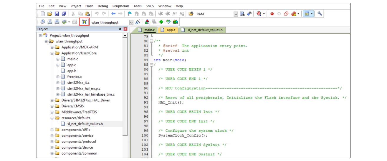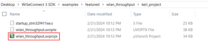 4. Navigate to the keil_project sub-folder of an STM32 example available with the WiSeConnect SDK v3.x.