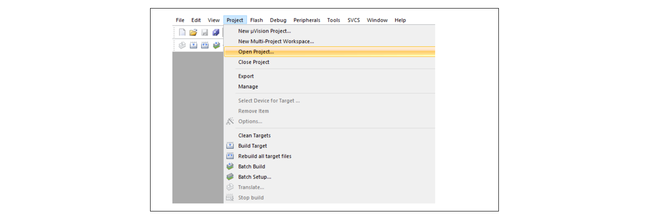 1. Open the Keil µVision integrated development environment (IDE) tool.