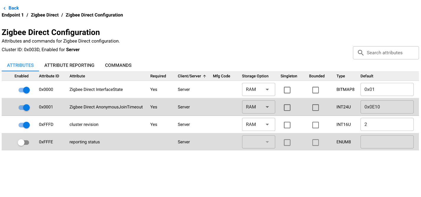 The Zigbee Direct Configuration Cluster contains the various attributes mentioned in previous sections.